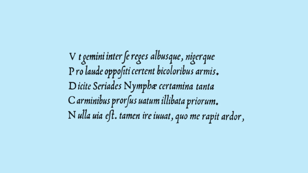 The initial idea for the family started in a perhaps weird place: 1500s italic calligraphy and movable typefaces based on it. In these early days, the lowercase was a cursive italic. The capitals, however, were upright forms. Since the capital letters in these texts occurred relatively rarely – an average of something like once every forty characters – their presence clearly wasn’t disruptive to readers. Not disruptive enough to feel the need to draw italic capitals, which would require a whole new set of sorts to be drawn, cut and cast. I can’t blame them for wanting to be efficient.