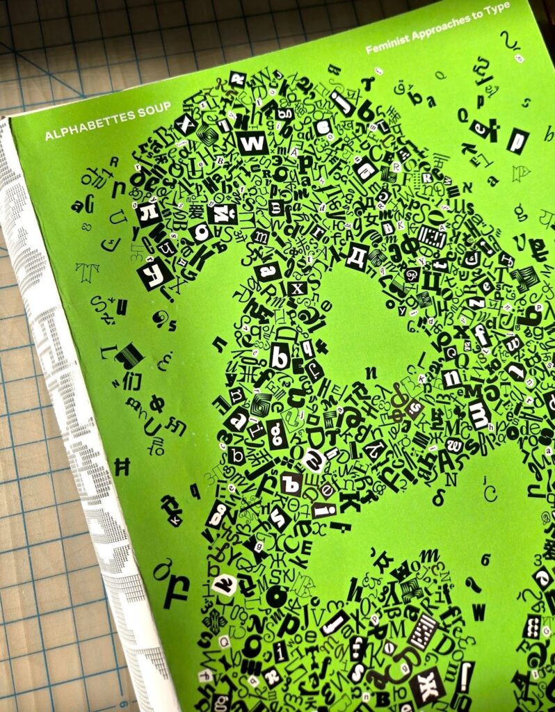 I could probably talk for twenty-four hours about each article (47!), interview (8!), typeface (115!), and header (252!) in the book. But not this year. I guess you’ll just have to read it yourself. Which reminds me: There’s still time to pre-order a copy (or two!) of Alphabettes Soup: Feminist Approaches to Type. It turns out, making really good books takes a lot of time, effort, and resources. We are so grateful to all of our generous sponsors and donors but we came up a bit short of our original financial goals. Pre-ordering this book directly supports independent, feminist design publishing and the work of women and gender diverse individuals in type. It also ensures you’ll have your very own copy to hang out with for years to come. And that’s not a bad way to celebrate International Women’s Day. Hang in there 💚.