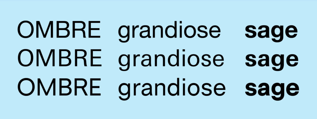 The three widths are optimised for their different use sizes. The Narrow styles are used as footnotes, sidenotes and other typographic metatextual elements. The Regular widths are the general-purpose neogrotesk, ready for running text from 10 to 20 points. Then, for large and eye-catching use, such as headlines, logos and quotes, the Wide styles can go as big as you want. But nobody’s going to stop you if you mix things up, of course.