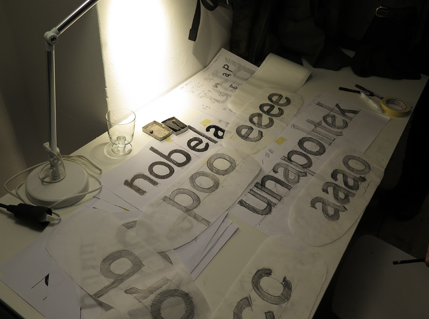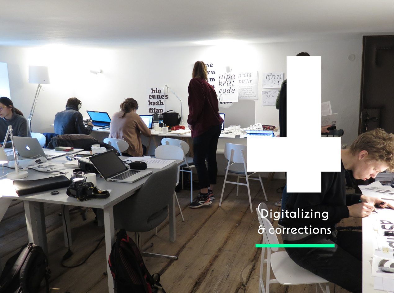 On Thursday we continued digitizing and developing our typefaces. Basically: designing, correcting, coffee break, designing, correcting, coffee break … and so on …